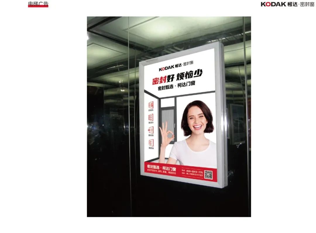 小區(qū)、高炮、公交站牌、電梯、車站等不同的場景,只要是用戶出現(xiàn)的地方,就會有柯達(dá)密封窗的出現(xiàn),通過內(nèi)容和畫面設(shè)計,讓柯達(dá)密封窗出現(xiàn)在用戶的生活場景當(dāng)中,向用戶傳達(dá)【密封窗】的概念,柯達(dá)能為用戶解決了什么問題,這樣才能給用戶留下深刻印象,讓用戶認(rèn)準(zhǔn)買密封窗就找柯達(dá)品牌。